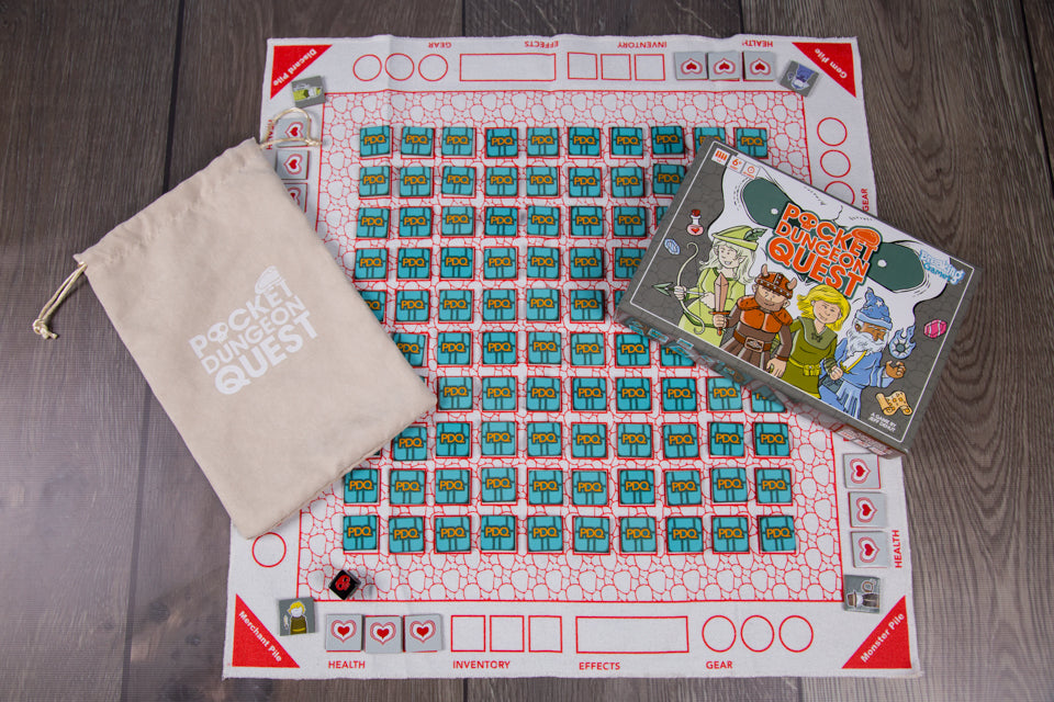 * Pocket Dungeon Quest is a simplified, casual rogue-like tabletop adventure for 2-4 players. PDQ is a unique tabletop game that is inspired by classic video games such as Rogue and Sword of Fargoal. This original board game is made up entirely of tiles that represent a dungeon, monsters and the items that could be found within.